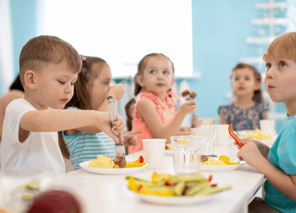 - Students eat breakfast in their classroom after the official start of the school day.